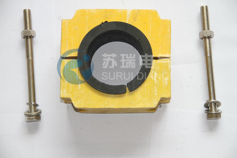 电缆夹具采用电气和机械性能俱佳的阻燃型不饱和聚酯模塑料DMC材料经特殊工艺加工模压而成,由上、下两部分组合而成,型号用SEJJ表示。电缆夹具的主要作用就是夹持电缆兵将其固定在一个选定的位置,为了防止电缆夹具上下松动导致电缆移位,您只要用苏瑞电气为您提供的螺杆、螺丝、螺帽及垫片等,用扳手将夹持在电缆上的电缆夹具套上螺杆、加上垫片等,把螺丝拧紧即可!